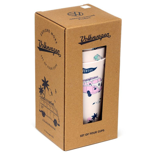 Ensemble de 4 Gobelets de Pique-nique en Plastique Recyclé Volkswagen - Van VW T1 Explore More