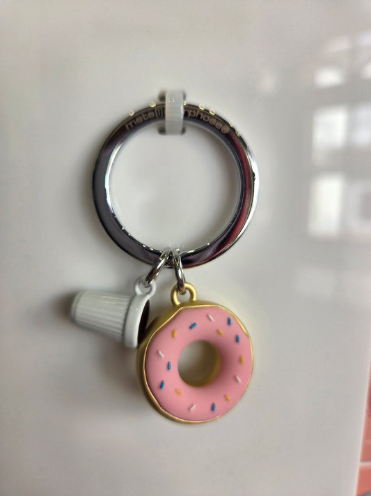 Porte clé metalmorphose fun donut gourmand rose 3D en métal massif kawaii