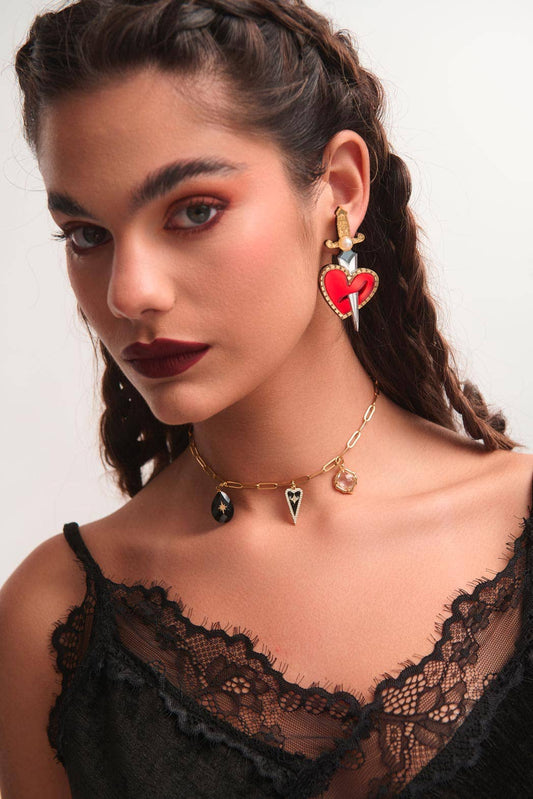 Boucles d'oreilles en plexiglas cœur et poignard