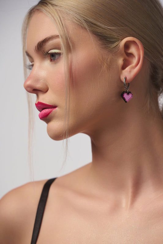 Boucle d'oreille pixel geek mini coeur