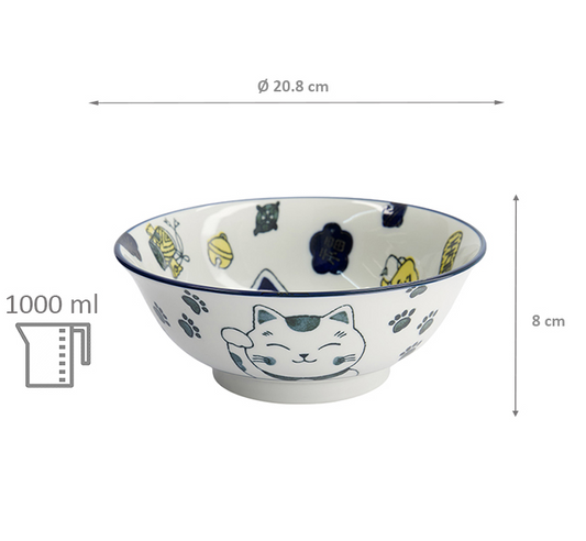 Bol a ramen bleu Lucky cat kawaii neko 1000ml