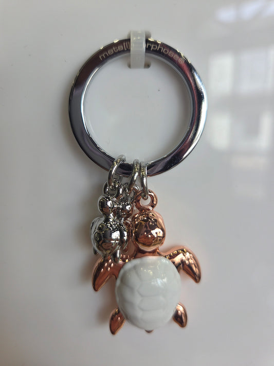 Mignon porte clé metalmorphose fun tortue et ses petits 3D en métal massif