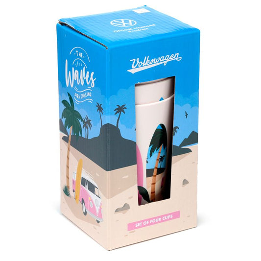 Ensemble de 4 Gobelets de Pique-nique en Plastique Recyclé Volkswagen verre - Combi VW T1 The Waves are Calling