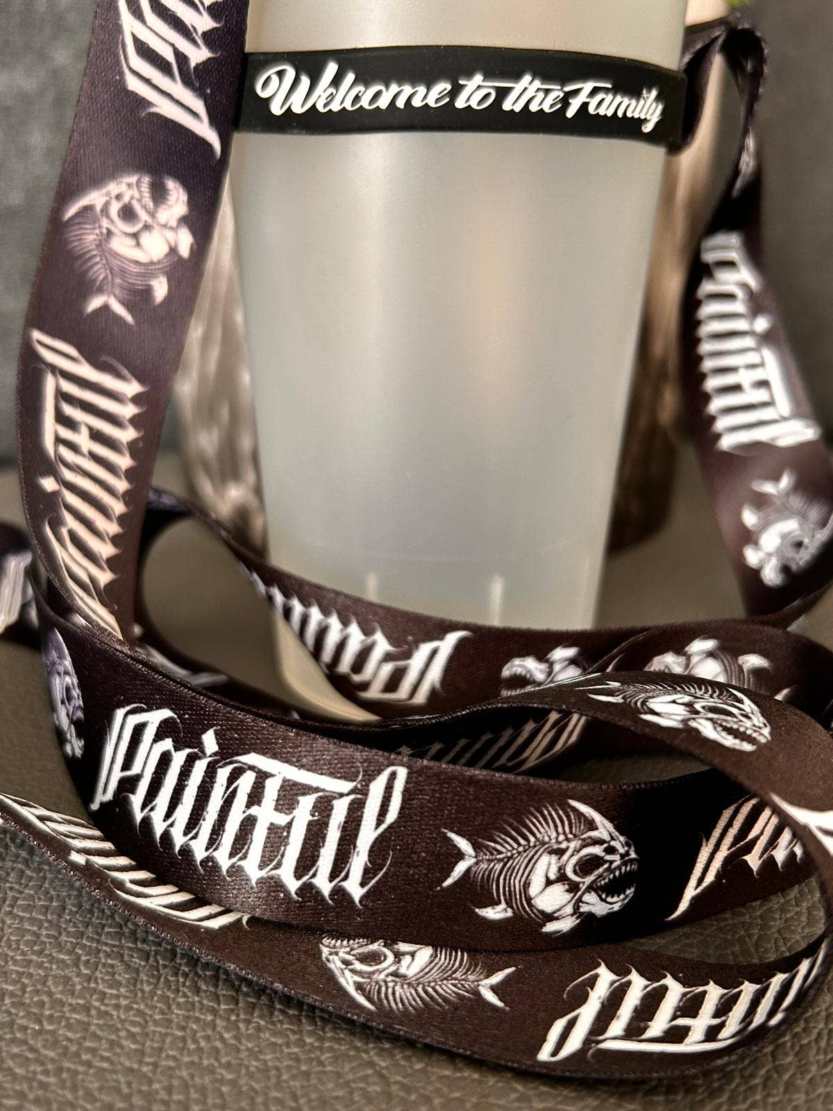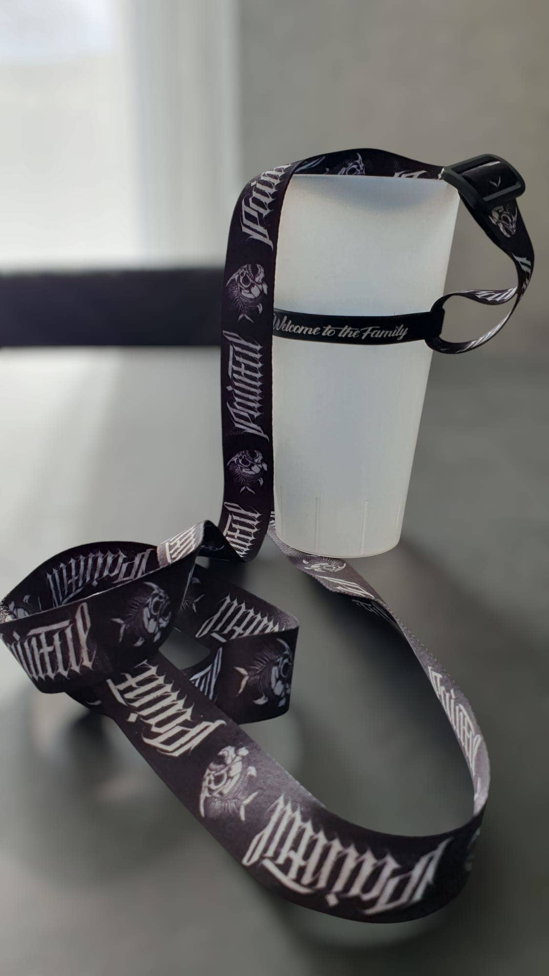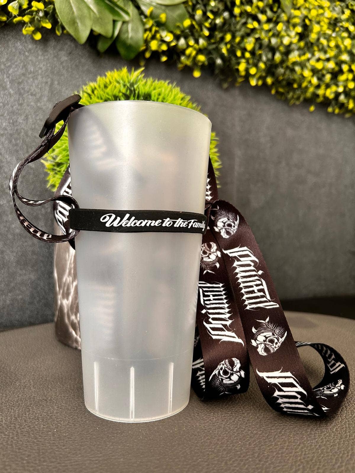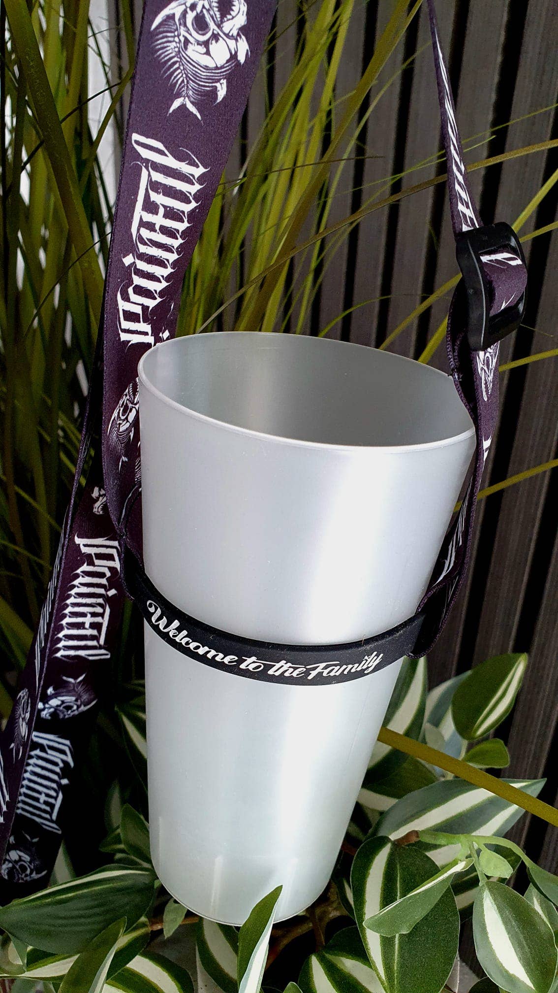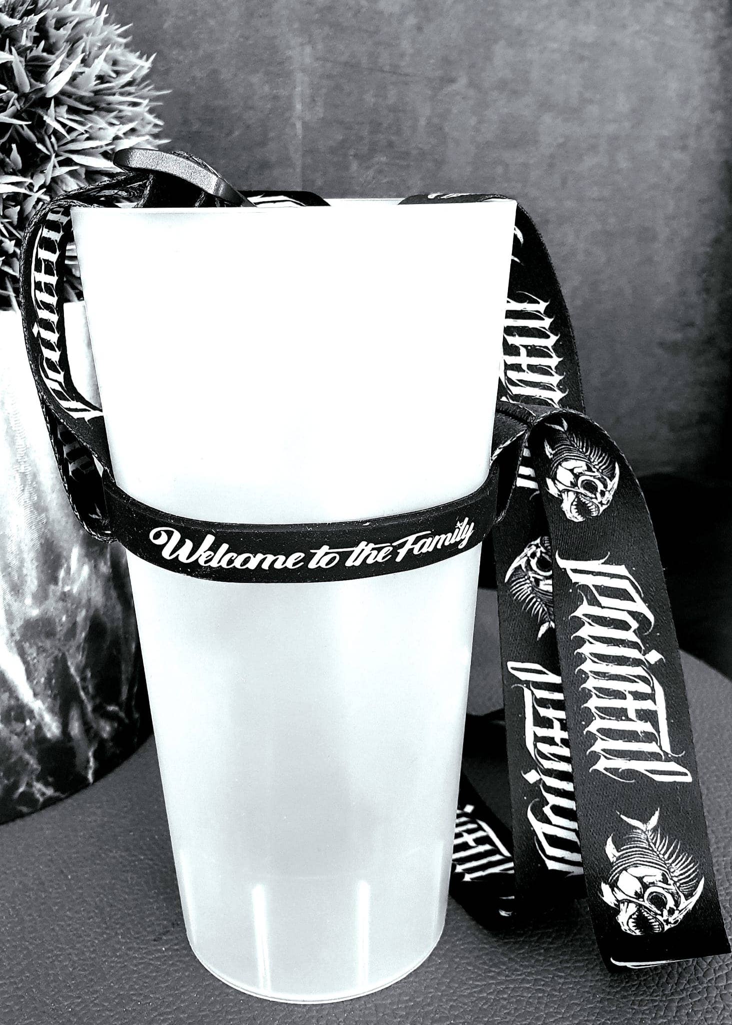 Tour de cou porte gobelet Festival !!! Libère tes mains, garde ton verre près de toi. Cette sangle de 25mm se porte en bandoulière ou autour du cou, épousant chaque mouvement de ta journée.